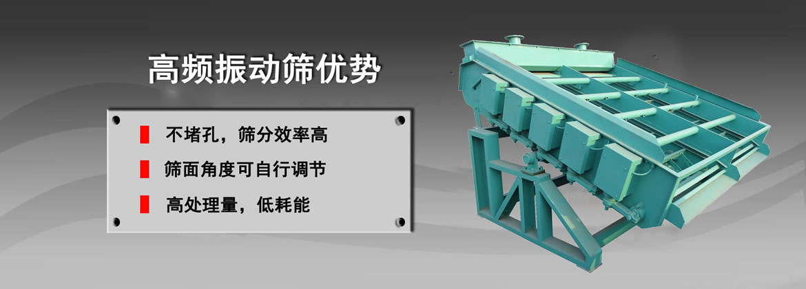 高頻篩采用高頻率可以破壞礦漿表面的張力和細粒物料在篩面的高速振蕩,加速了密度比較大的有用礦物和析離作用,提高了小于分離粒度物料與篩孔接觸的概率,造成了較好的分離條件,從而使小于分離粒度的物料,尤其是大密度的物料和礦漿一起透過篩孔篩出。