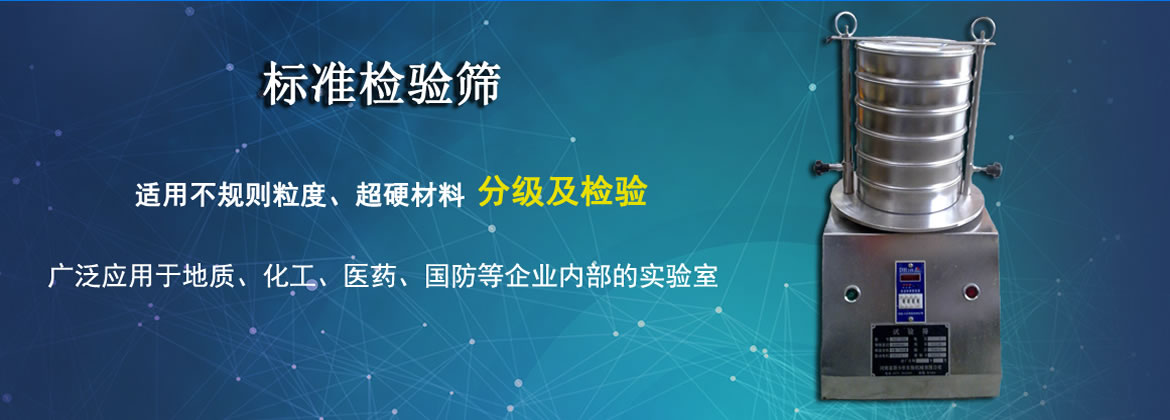 標準檢驗篩是以YZU立式振動電機作為整機振動源,通過振動電機帶動上部振動盤振動,再通過振動盤傳導至安放在振動盤上部圓形篩框,然后由需要檢測目數的篩框把小于篩網孔徑的物料顆粒篩分至下層篩框,如此層層篩選,使每層檢驗篩內只留相同粒度的物料而達到不同粒度的分離,使篩框中的物料能非常有效的起到分級篩分目的。