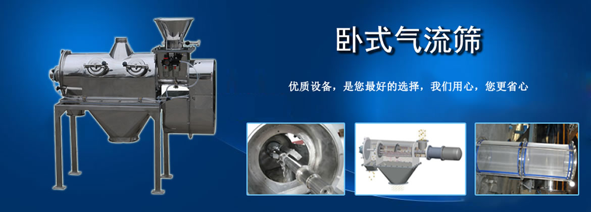 臥式氣流通篩適合150-500目各種粉狀物料的篩選分級,其篩分效率高、產量大、自動進排料、連續作業、防塵性好,使以往其它種類篩分機難以進行高精度篩分作業成為易事。經過對120-180目輕鈣、300目重鈣、400目活性鈣、300目山楂粉、320-500目鋅粉、500目氧化鐵黑等物料的篩分得到了較最佳篩分效果,可得到每平方米篩網面積每小時產量均在一噸左右,同時測得篩分精確度在95%以上,空氣含塵量低于10mg/m3。