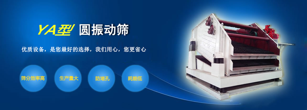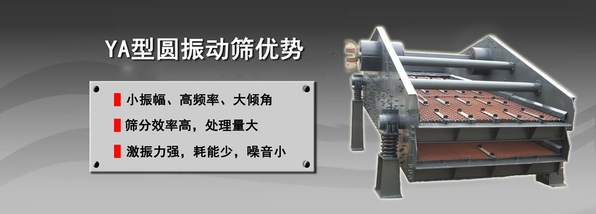 YA型圓振篩的篩箱運動軌跡為圓形或橢圓形圓振動篩采用慣性激振器產生振動其振動源一般為電動機帶動激振器.圓振動篩為單軸振動器固定在篩箱上的主軸由振動電機帶動告速旋轉安裝在主軸上的偏心體隨之轉動產生離心慣性力使可以自由振動的篩箱產生近似圓形軌跡的振動。